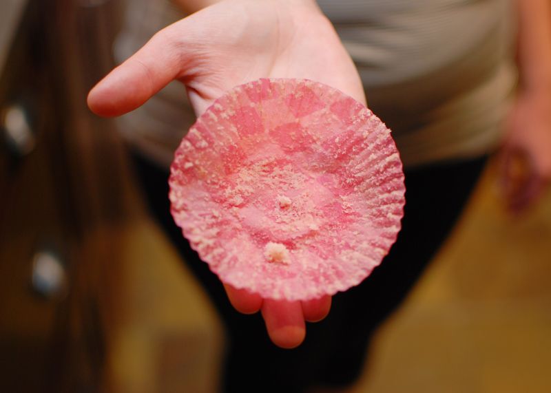 This recipe is originally a Smitten Kitchen cake recipe that Deb Perelman adapted from one of her favorite cookbooks, Sky High. She used it for a pretty princess birthday cake, which I’m sure would be fabulous, but I decided to make them into individual cakes. Ina Garten maintains that adults are just like children when it comes to desserts: they want their own and they don’t want to share. I’m inclined to agree. This isn’t to say I don’t love a great big slice of cake, but these just seemed appropriate for the Memorial Day potluck I was headed to. If you’re inclined to think these are a little too cutesy for mixed company, just know the depth of flavor really balances the girly factor. Some fruit cakes try too hard to be light that they can end up tasting like the whipped air version of the original fruit. But this cake and frosting combination is like that solid strawberry shake (the kind with little bits of berry still intact) that would make you return to the burger joint. It has a richness that fills the small space of a cupcake wrapper.