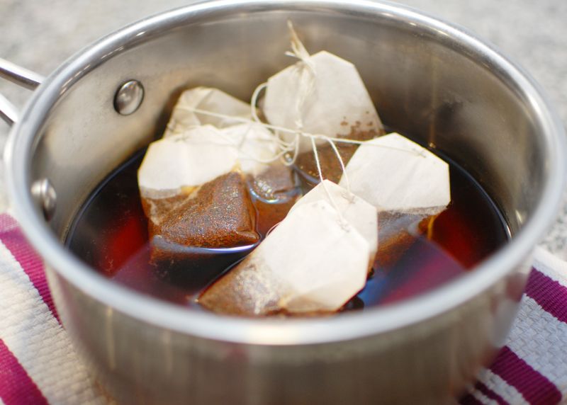 This is what nine bags of Lipton tea looks like. It gives a really distinct, powerful flavor to the layers of cake.