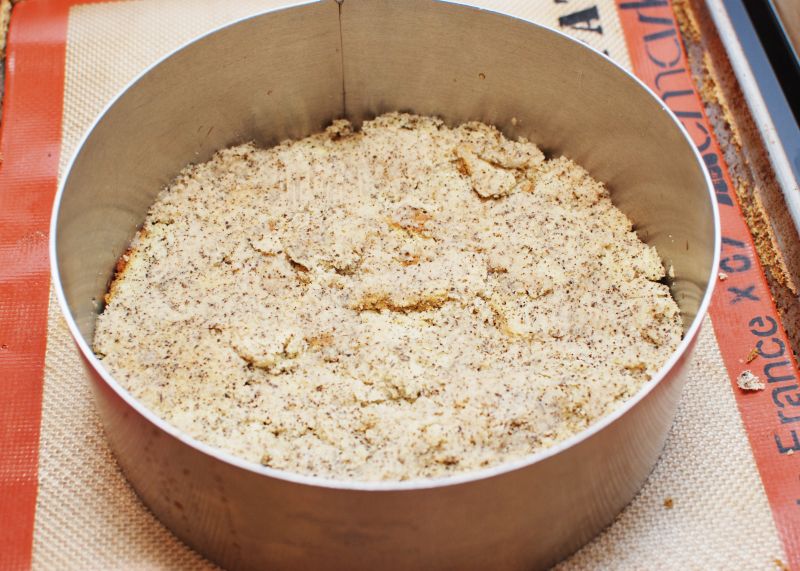 Clean the cake ring and place it in the center of the parchment-or-Silpat-lined sheet pan.